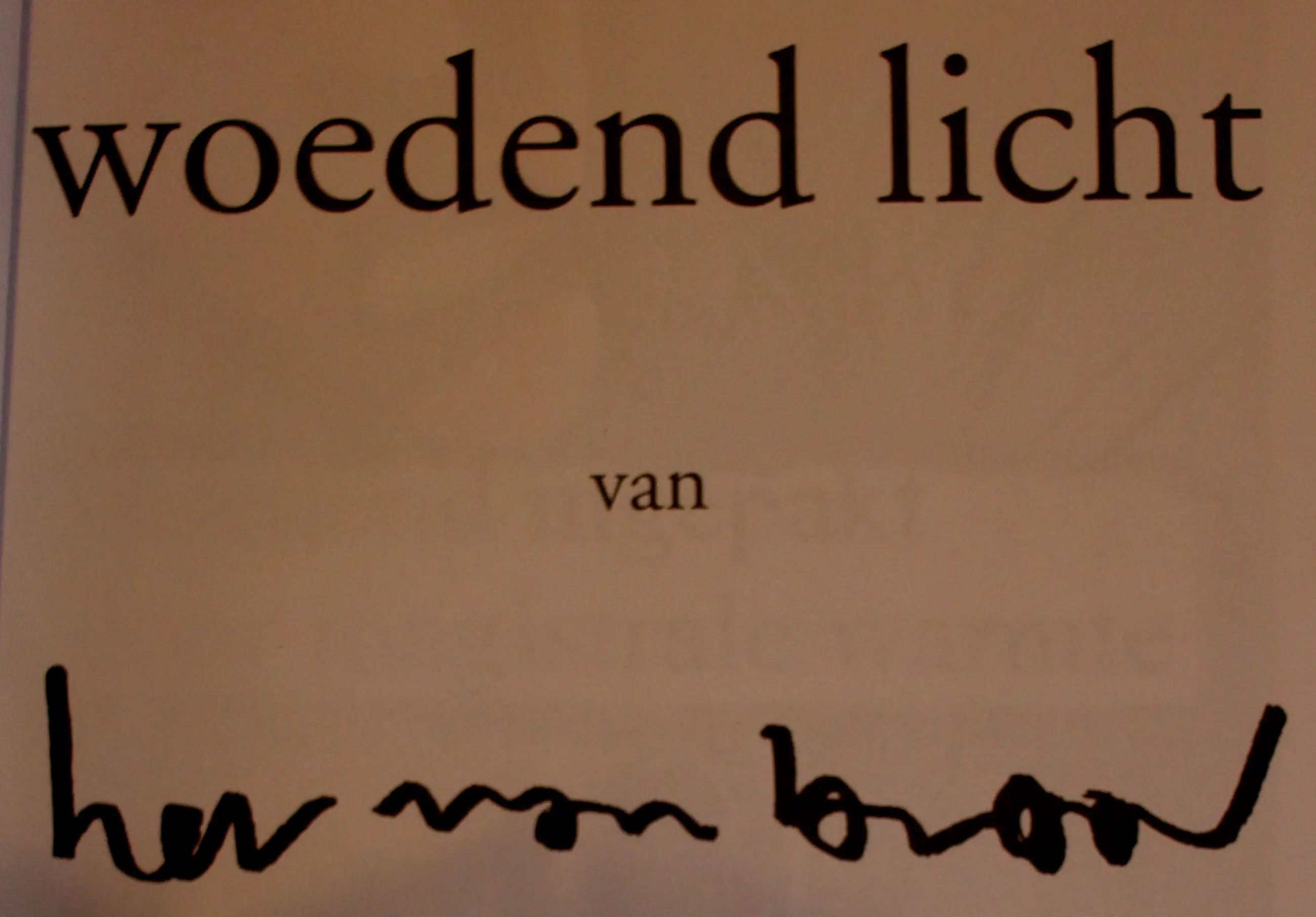 Zeefdruk met boek, van Herman Brood. Titel: Woedend licht. Jaar: 2000. Afmetingen boek: H34.5 x b24.5cm. De zeefdruk is in de druk gesigneerd door de kunstenaar.